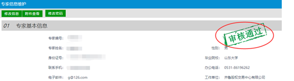 7.信息審核通過(guò)之后,頁(yè)面會(huì)有驗(yàn)證通過(guò)字樣出現(xiàn)。到此專(zhuān)家注冊(cè)流程結(jié)束。